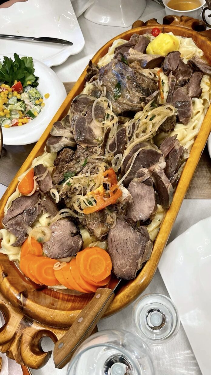 Türkiye’de Kazak yemekleri bulamayınca adapte olmak zorunda kaldım. Beshbarmak için at eti yerine sığır eti kullanıyorum. Kımız yerine ayran içiyorum – aynı değil ama en yakın alternatif.